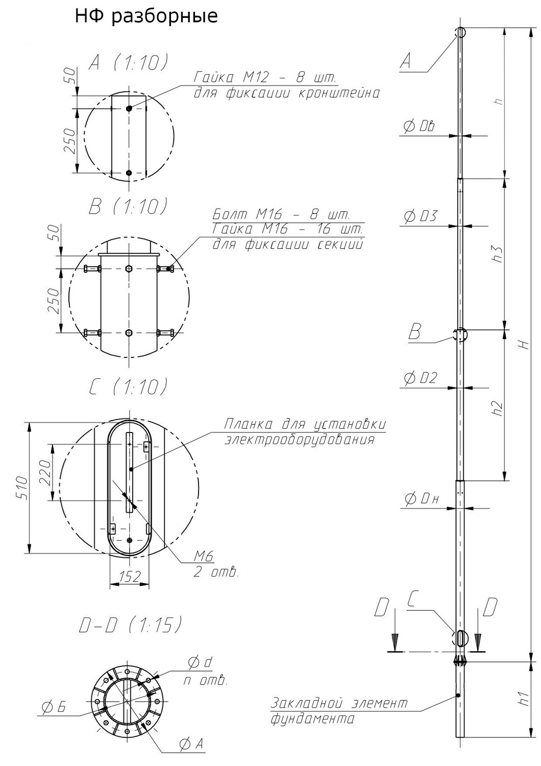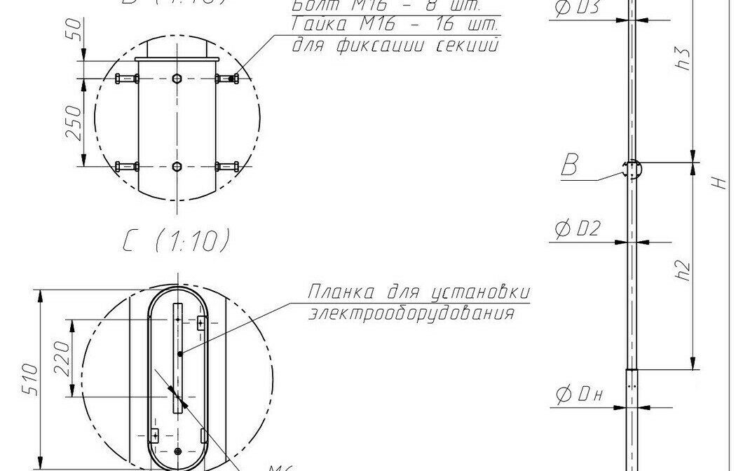 Высота от фланца опоры до нижней кромки лючка 500 мм.